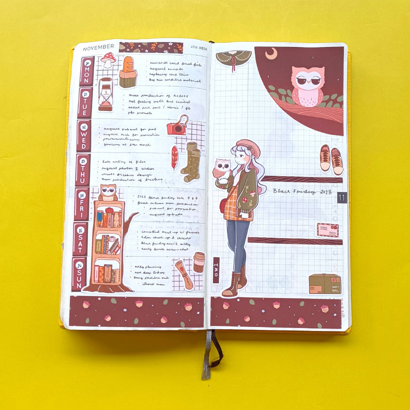 • Owl ( Birds of Autumn ) Hobonichi Cousin Weekly Kit - hcwk023 Owl ( Birds of Autumn ) Hobonichi Cousin Weekly Kit - hcwk023