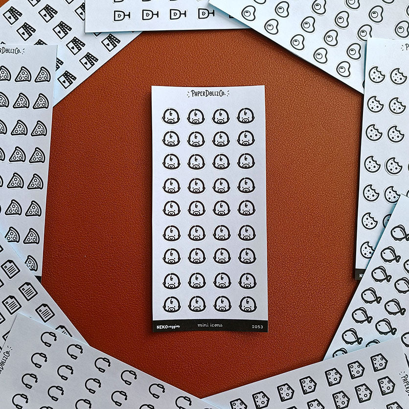 Minimalist icon stickers are perfect for looking for small journal and planner stickers. Illustrated by Mama Cat with Pepper!