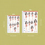 Enjoy planning with Just Dolls sticker sheet! This sticker sheet contains doll illustrations only. The number of dolls for every sticker sheet varies on the design.