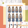 Enjoy planning with Just Dolls sticker sheet! This sticker sheet contains doll illustrations only. The number of dolls for every sticker sheet varies on the design.