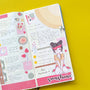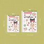 This sticker sheet's design includes one doll and a variety of items related to the theme. It was the shop's first category and its all-time favorite category across its different sales channels.