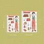 This sticker sheet's design includes one doll and a variety of items related to the theme. It was the shop's first category and its all-time favorite category across its different sales channels.