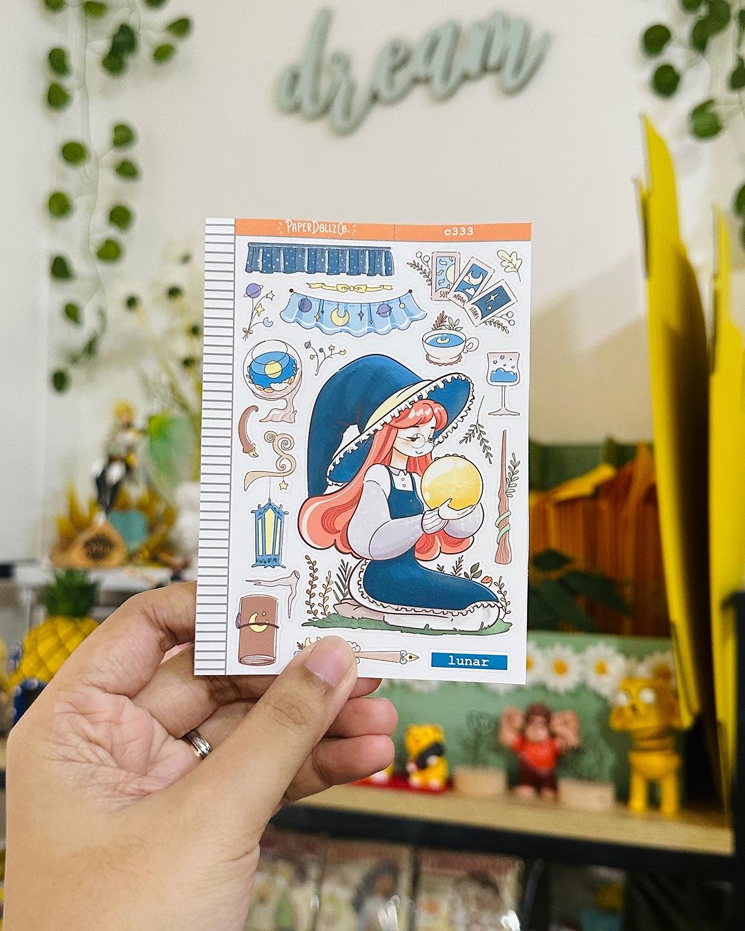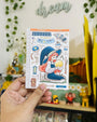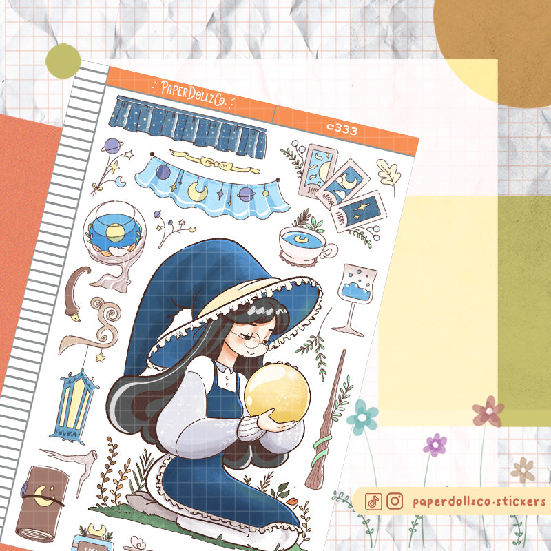 This sticker sheet's design includes one doll and a variety of items related to the theme. It was the shop's first category and its all-time favorite category across its different sales channels.