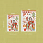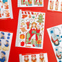 This sticker sheet's design includes one doll and a variety of items related to the theme. It was the shop's first category and its all-time favorite category across its different sales channels.