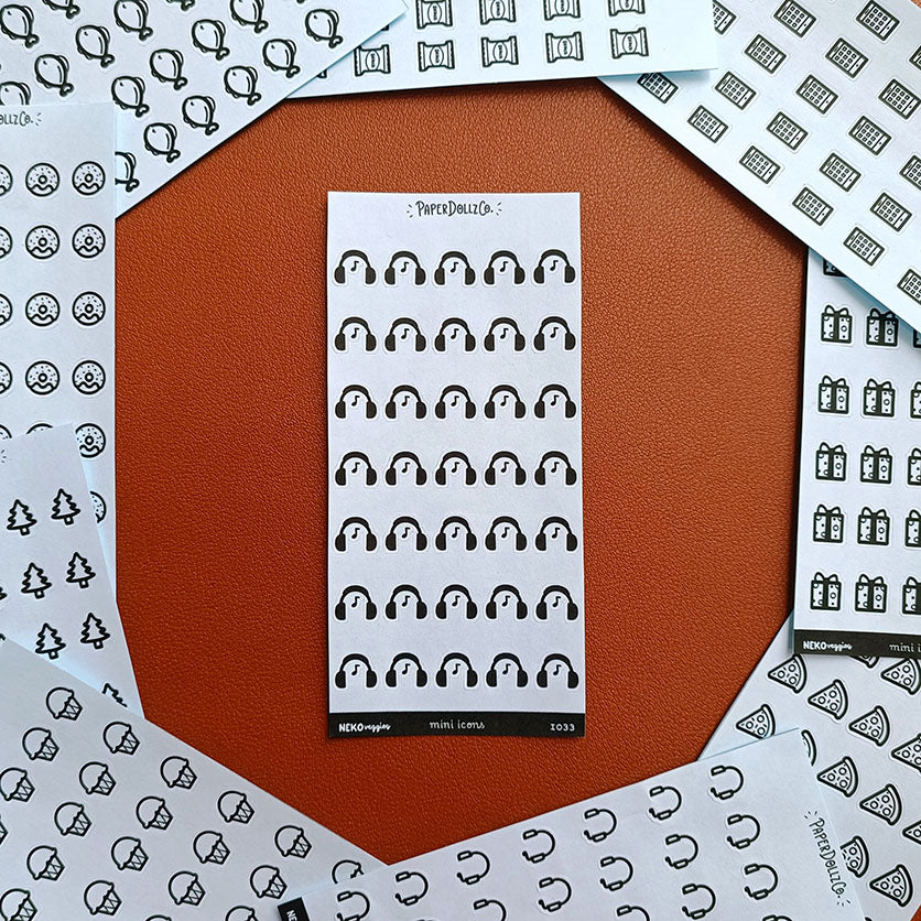 Minimalist icon stickers are perfect for looking for small journal and planner stickers. Illustrated by Mama Cat with Pepper!