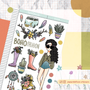 This sticker sheet's design includes one doll and a variety of items related to the theme. It was the shop's first category and its all-time favorite category across its different sales channels.