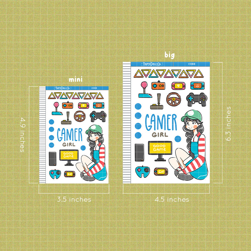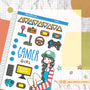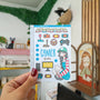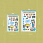 This sticker sheet's design includes one doll and a variety of items related to the theme. It was the shop's first category and its all-time favorite category across its different sales channels.