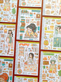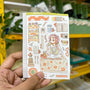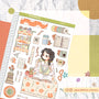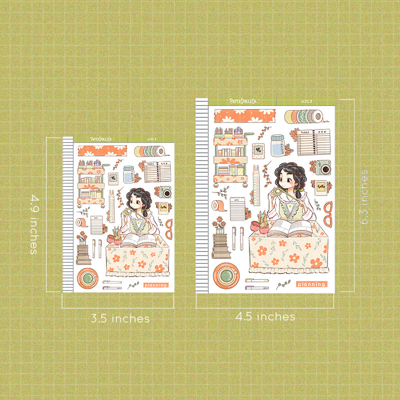 This sticker sheet's design includes one doll and a variety of items related to the theme. It was the shop's first category and its all-time favorite category across its different sales channels.