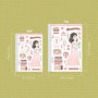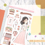 This sticker sheet's design includes one doll and a variety of items related to the theme. It was the shop's first category and its all-time favorite category across its different sales channels.