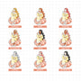 This sticker sheet's design includes one doll, and a variety of items related to the theme. It was the shop's first category and its all-time favorite category across its different sales channels.